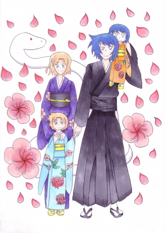 オリジナル 女の子 女性 男性 家族 姉妹 着物 年賀状 お母さん お父さん オリキャラ