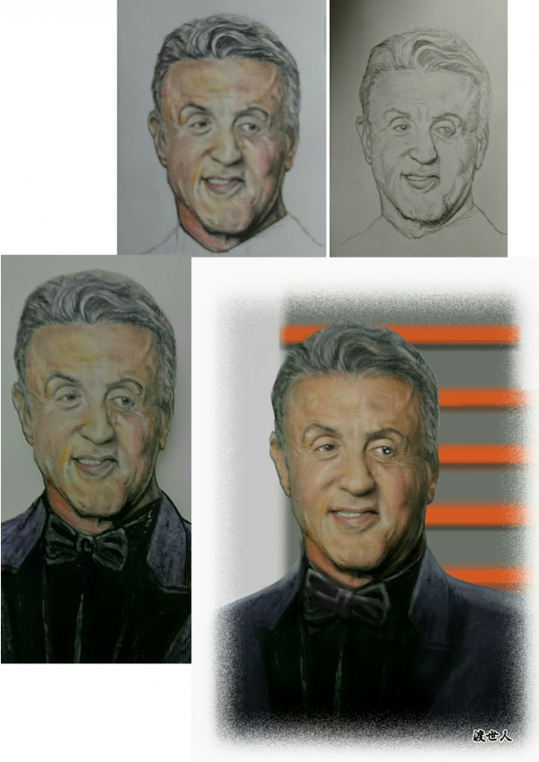 鉛筆から色鉛筆、デジタルと加工して描いたスタローンさん