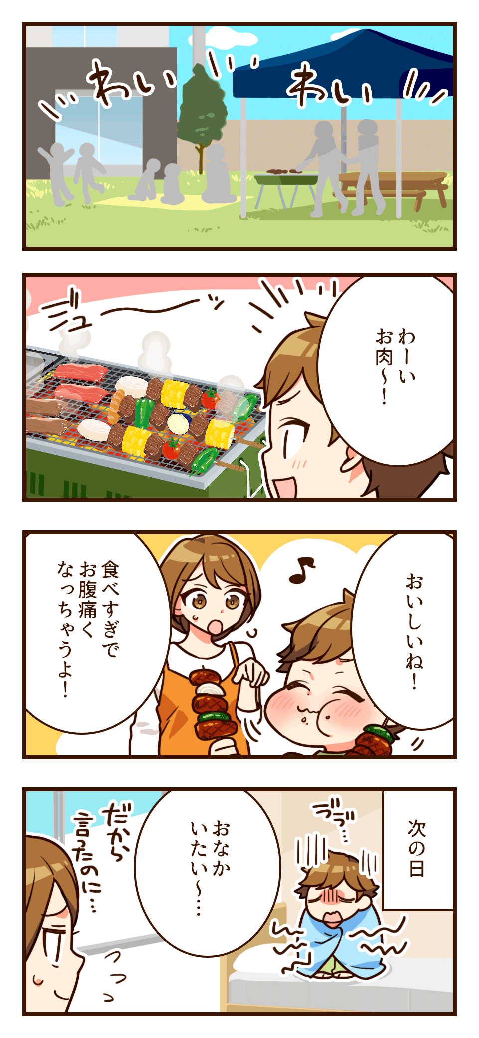 先日、お友達家族とBBQをしました。 息子は初BBQだったことと仲良しのお友達がいて楽しかったこともあり、いつもより沢山食べていたので翌日お腹を壊していました(苦笑) 楽しいとついつい食べ過ぎてしまいますよね(笑) 标签: はなまるFX4コマ漫画4コマオリジナル男の子創作オリキャラ日常子供twitter